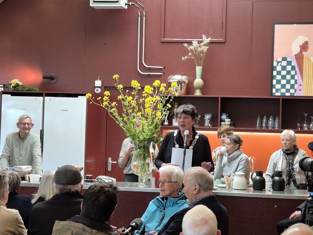 Frans van Zwam houdt een presentatie over Hollands Kroon keuzes maken tijdens de oorlog en de bevrijding.