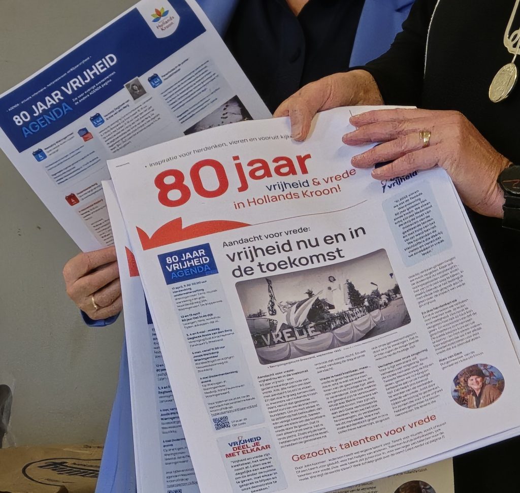 Op 10 april 2025 komt er een Herdenkingskrant Hollands Kroon uit. De krant wordt gerealiseerd met input van de historische verenigingen, de 4 mei comités, het veteranenplatform en de stichting Herdenkingspalen Hollands Kroon. De krant wordt ingevoegd in het nieuwsblad Hollands Kroon, die huis aan huis wordt verspreid. We bieden de krant ook aan op verschillende locaties verspreid over Hollands Kroon voor iedereen die hem gemist heeft.