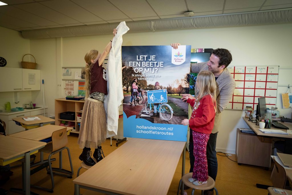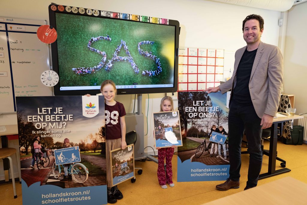 Woensdag 14 januari was de onthulling van de campagne in groep 4 van basisschool de Sint Antonius in Nieuwe Niedorp. Chloë en Emma, die samen model stonden voor de campagne, hielpen wethouder Mark Versteeg bij dit officiële moment. In de klas spraken de kinderen over waarom verkeersveiligheid zo belangrijk is. “Mijn broer is een keer aangereden,” zei een van hen. Een ander merkte op: “Soms gaan auto’s heel hard, dat vind ik eng.” Ook klonk de wens: “Ik wil dat iedereen veilig kan fietsen met hun kind.”