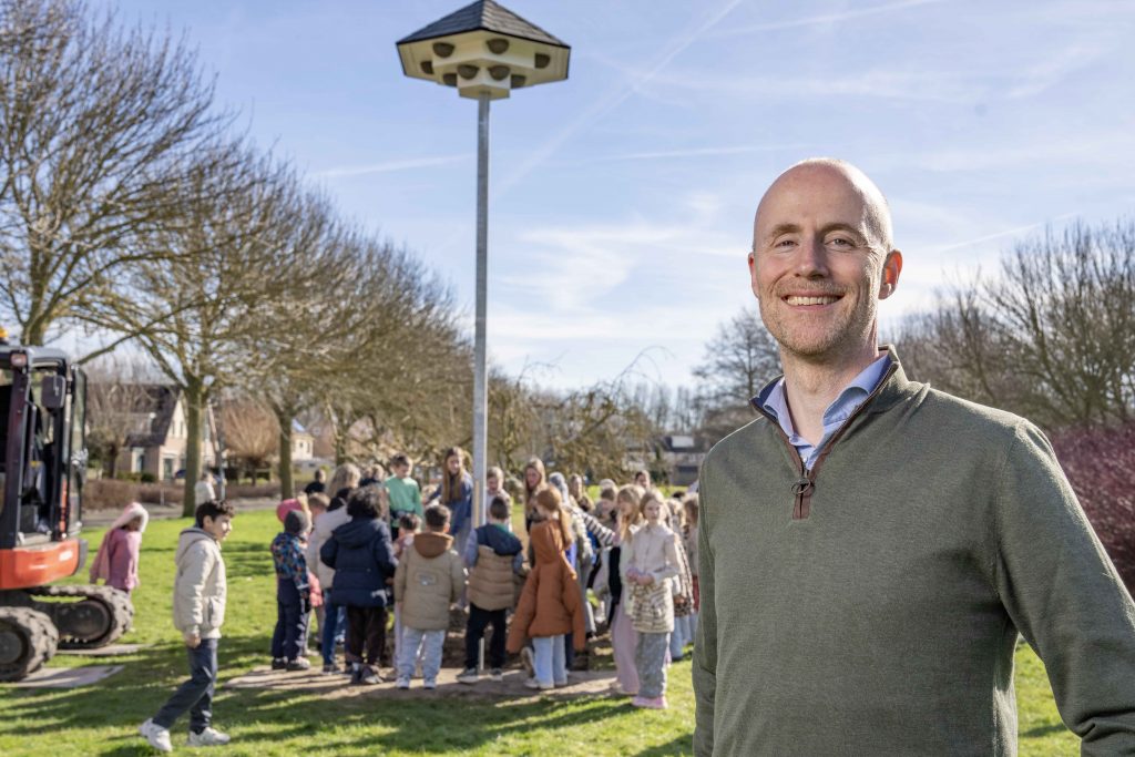 Ook leerlingen van OBS de Peppel uit Middenmeer hielpen mee bij het plaatsen van de zwaluwtillen. Zo dragen zij zelf bij aan het beschermen van de huiszwaluw en leren zij op een praktische manier over natuur, vogels en biodiversiteit in hun eigen leefomgeving.