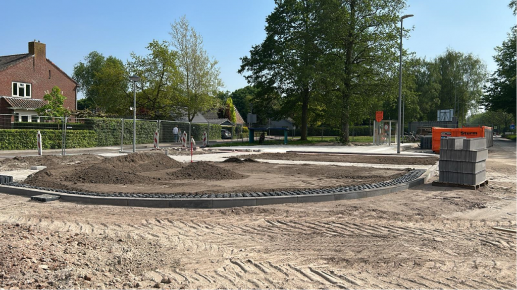 Tevens zijn de voorbereiding voor het planten van de nieuwe bomen gerealiseerd. Het kruispunt voor de Samenstroom kerk is er in zijn geheel uitgehaald en wordt voorbereid voor het aanstraten. Er wordt hier net als voorgaand een korrellaag (mengranulaat) aangebracht als fundering van de toekomstige rijweg. In week wordt er begonnen met de voorbereidingen voor het asfalteren van de rijweg.