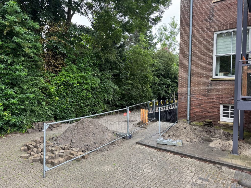 De aannemer is ook al begonnen met het verwijderen van de bosschages om een tijdelijke parkeerplaats aan te brengen voor als het huidige parkeerterrein wordt opgebroken. Het groen is onderzocht door een ecoloog, waarna is begonnen met het verwijderen en afvoeren van het groenafval. Het huidige parkeerterrein wordt begin 2024 opgebroken.