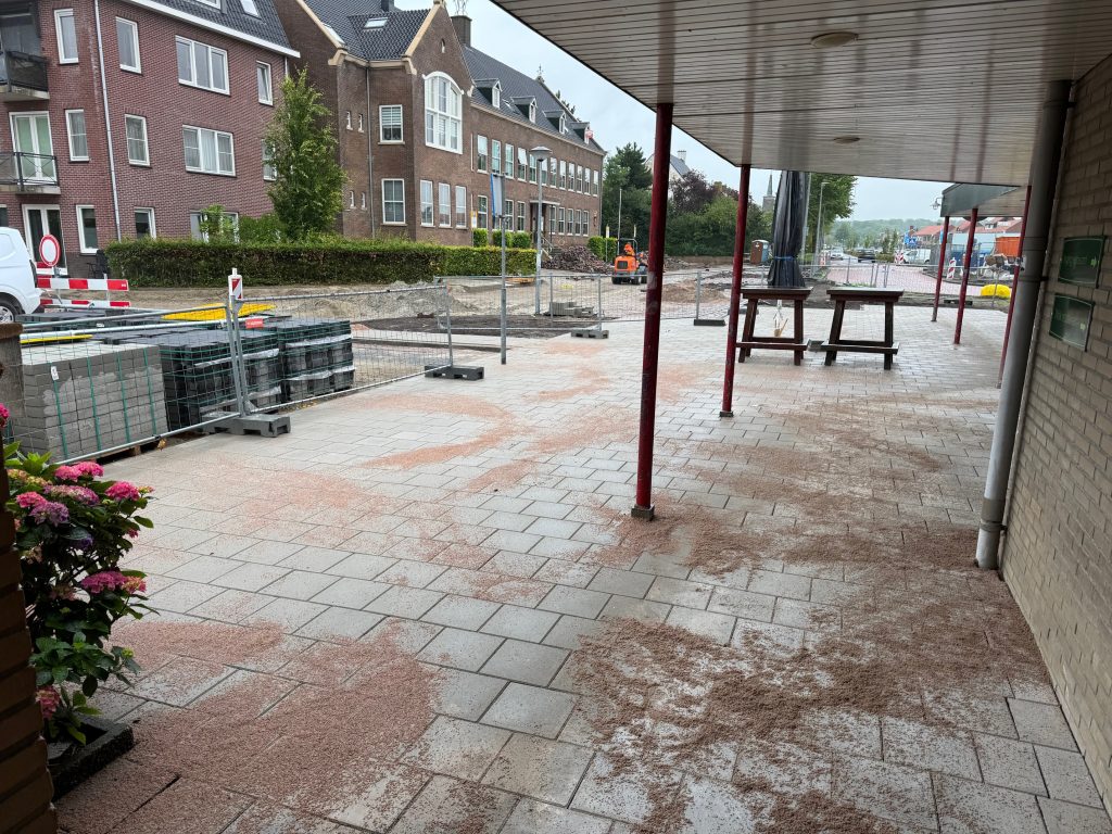 Er worden aan de voorzijde van het plein ter hoogte van de hoek bij de Meeuwstraat ook al straatwerkzaamheden verricht.