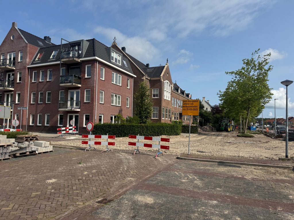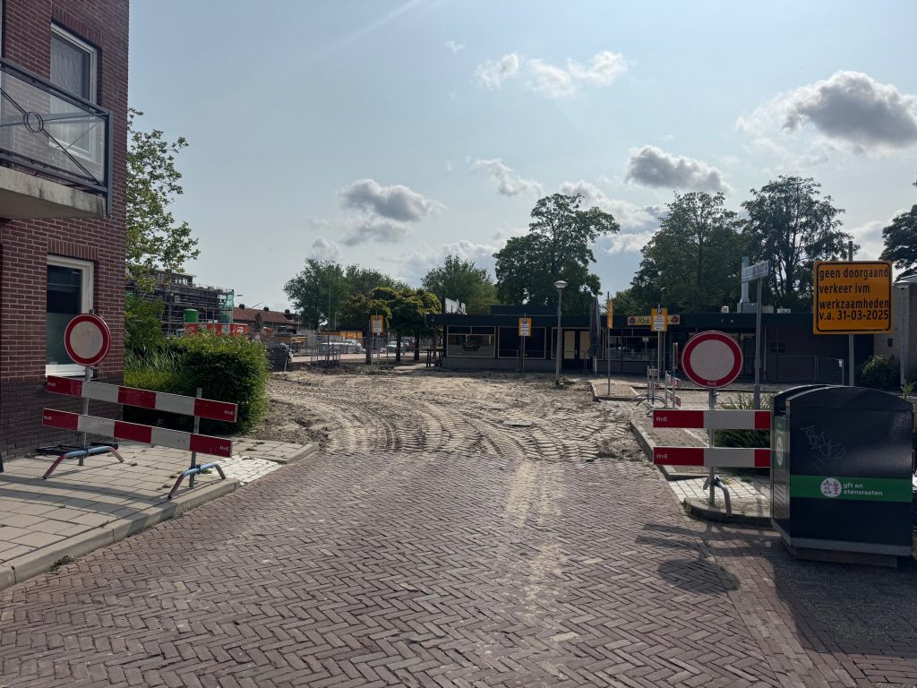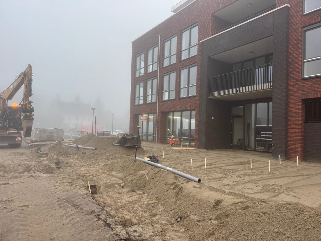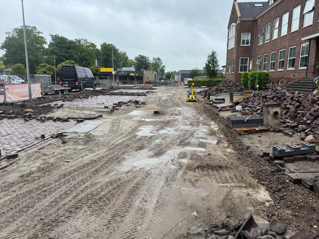 Op de foto’s is te zien dat er een nieuwe fundatielaag wordt aangebracht voor de toekomstige rijroute voor vrachtwagens die winkels bevoorraden. Deze fundatielaag wordt ook wel ‘korrel’ genoemd. Ook worden de putkoppen van het riool op hoogte gesteld. De stratenmaker is vervolgens bezig om de nieuwe bandenlijn te zetten. De verwachting is dat de aannemer deze week klaar is met het graaf en profileer werk. De stratenmaker gaat naar verwachting in week 47 de laatste werkzaamheden afronden.
