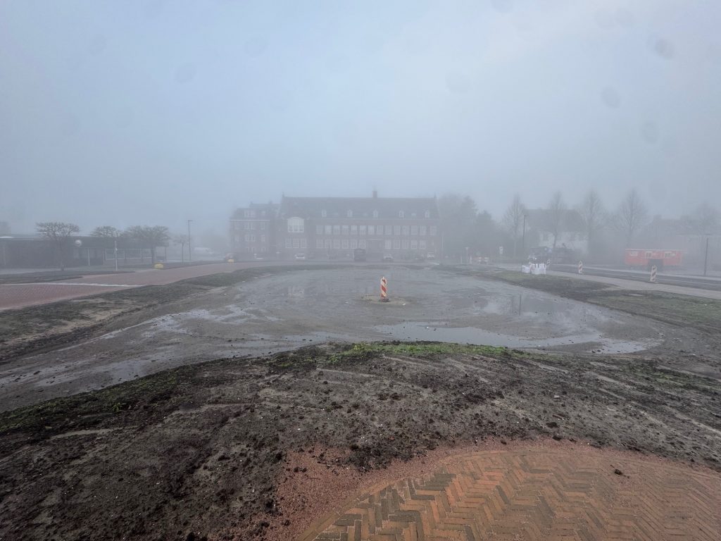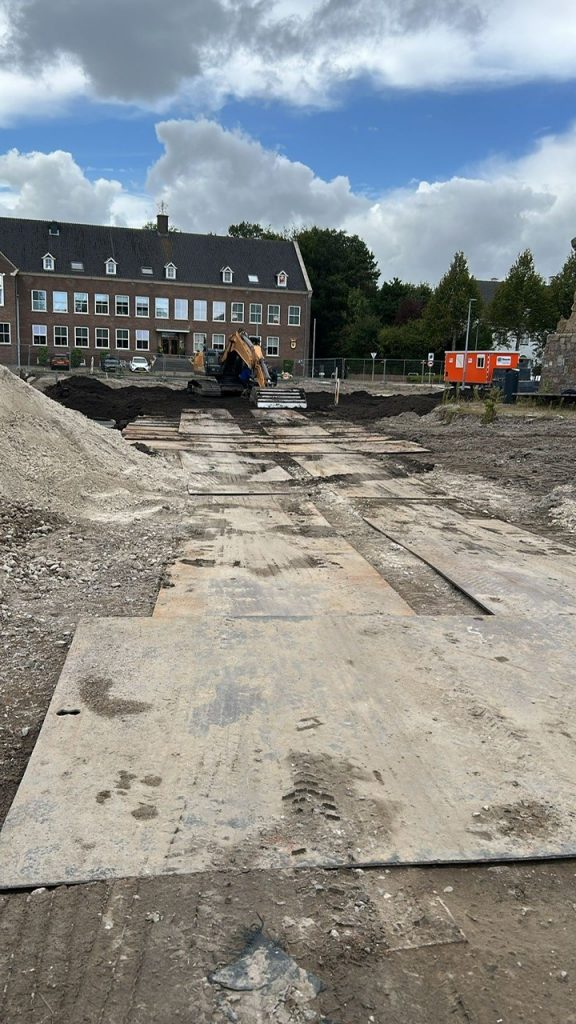Daarnaast wordt de eerste laag van het plein afgegraven en afgevoerd. Ook worden alle leidingen en kabels die niet in gebruik zijn opgegraven en verwijderd. Door deze werkzaamheden zijn er extra verkeersbewegingen dan voor aanvang uitvoering. De afgegraven grond wordt afgevoerd evenals het oude rioolstelsel. Nieuwe bomengrond of aarde worden aangevoerd.