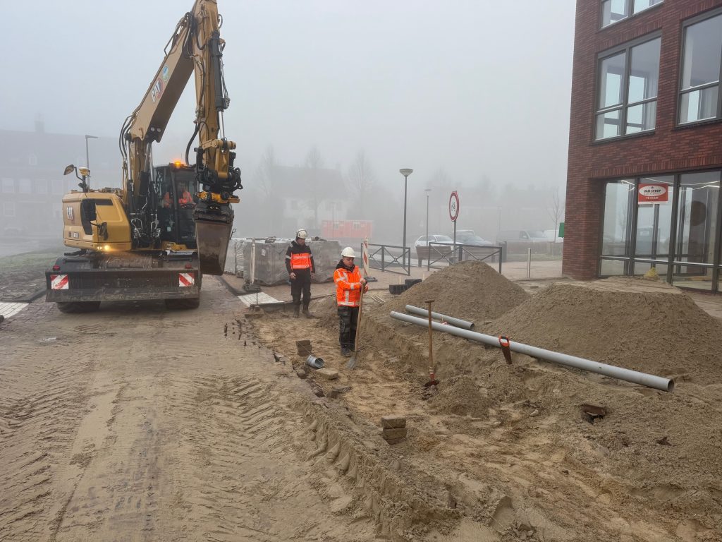 Op dinsdag 3 oktober 2023 heeft de rioolploeg van de aannemer de eerste putten geplaatst van het vuilwater-, hemelwater- en drainagesysteem.