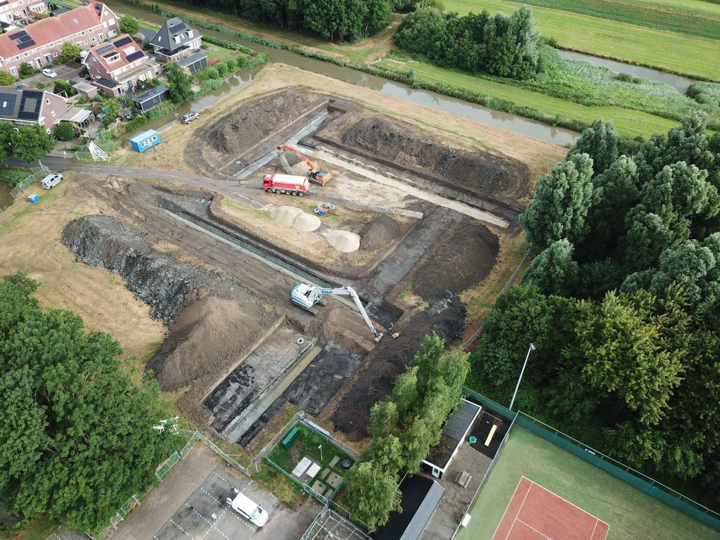 In Wieringerwaard wordt de grond voorbereid voor de nieuwe woonwijk Molenhof. Er is eerst een laag grond neergelegd. Dit zorgt voor een stevige bodem om later de woningen en straten op te bouwen.