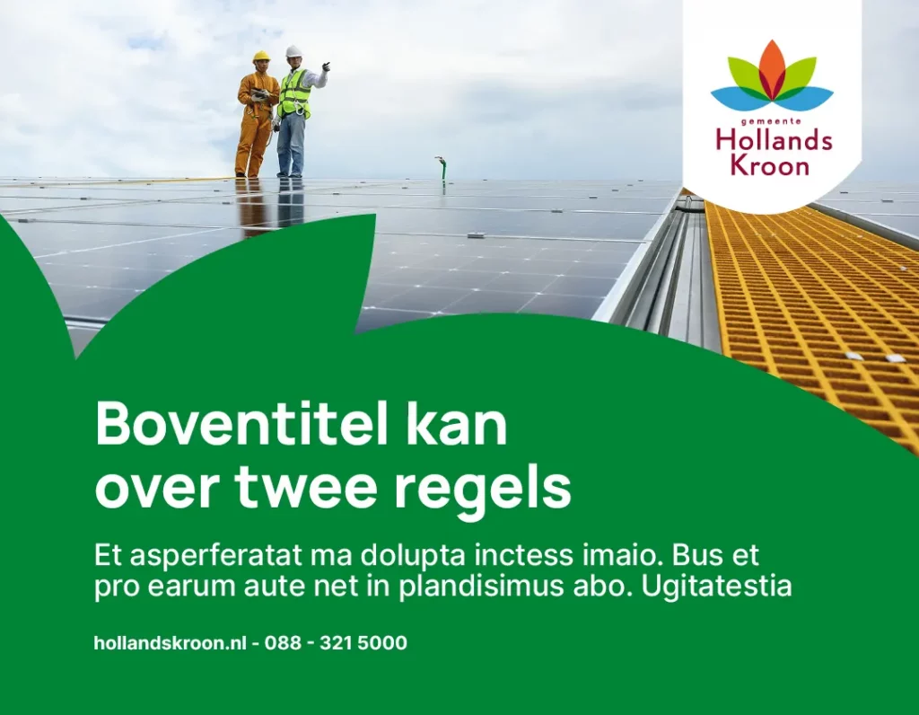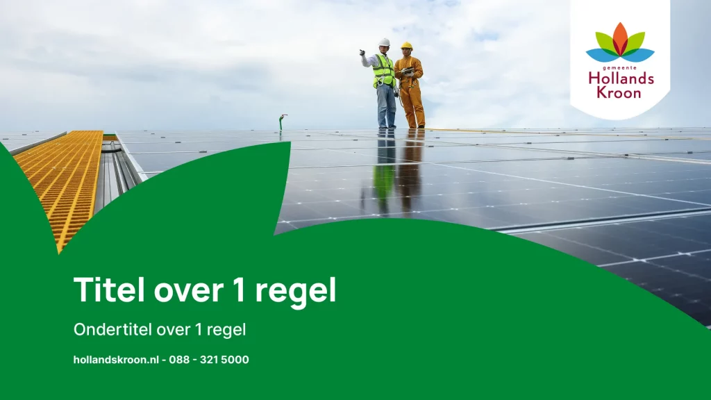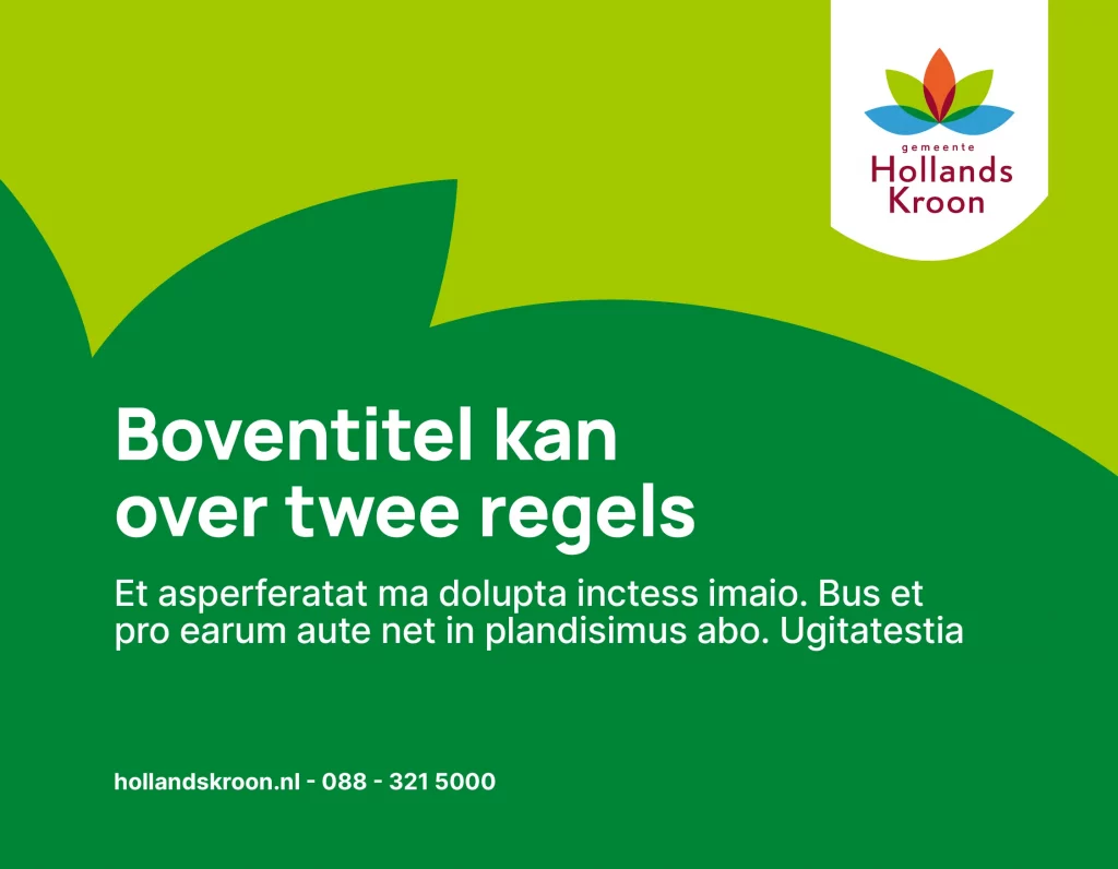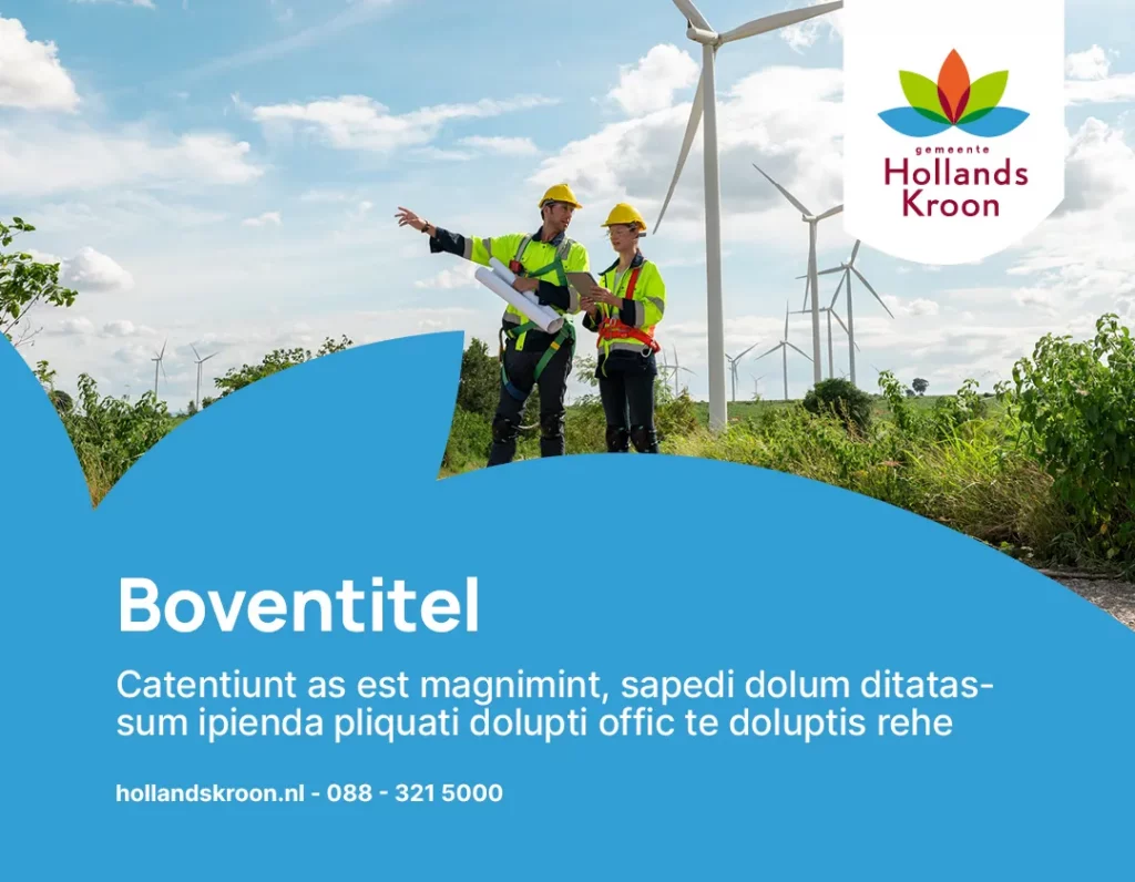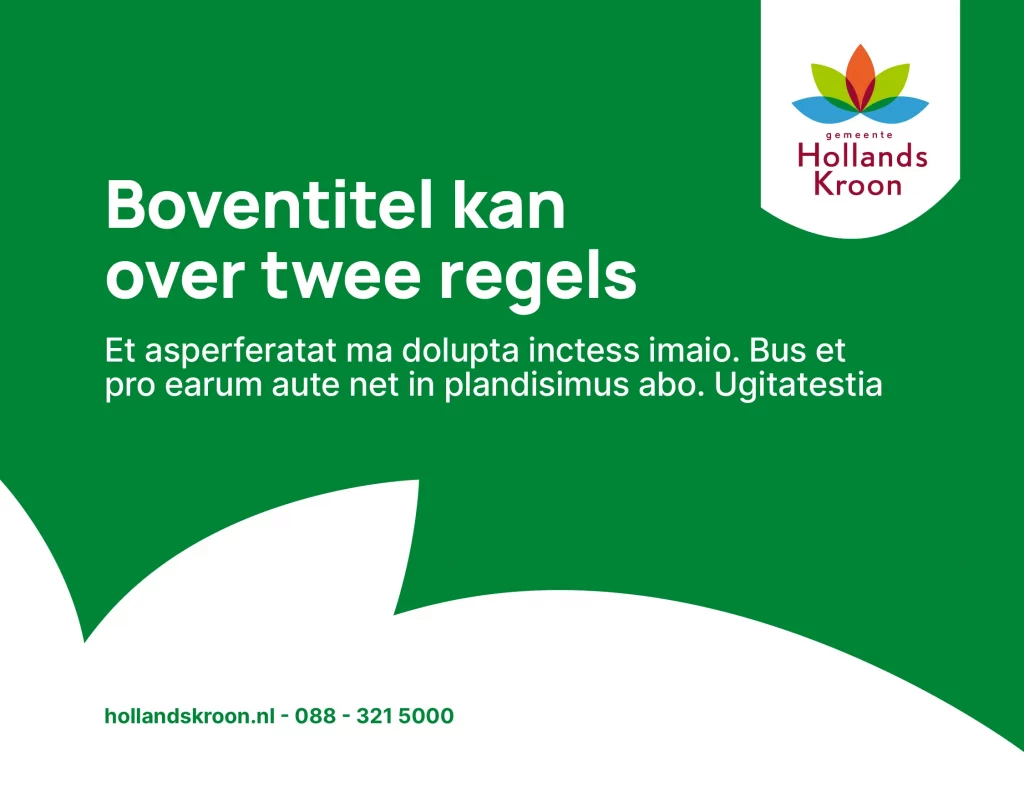 Hieronder vind je een lijst met digitale middelen waarop de huisstijl van Hollands Kroon wordt toegepast. Bekijk de pagina over kleur voor de mogelijke kleurencombinaties.