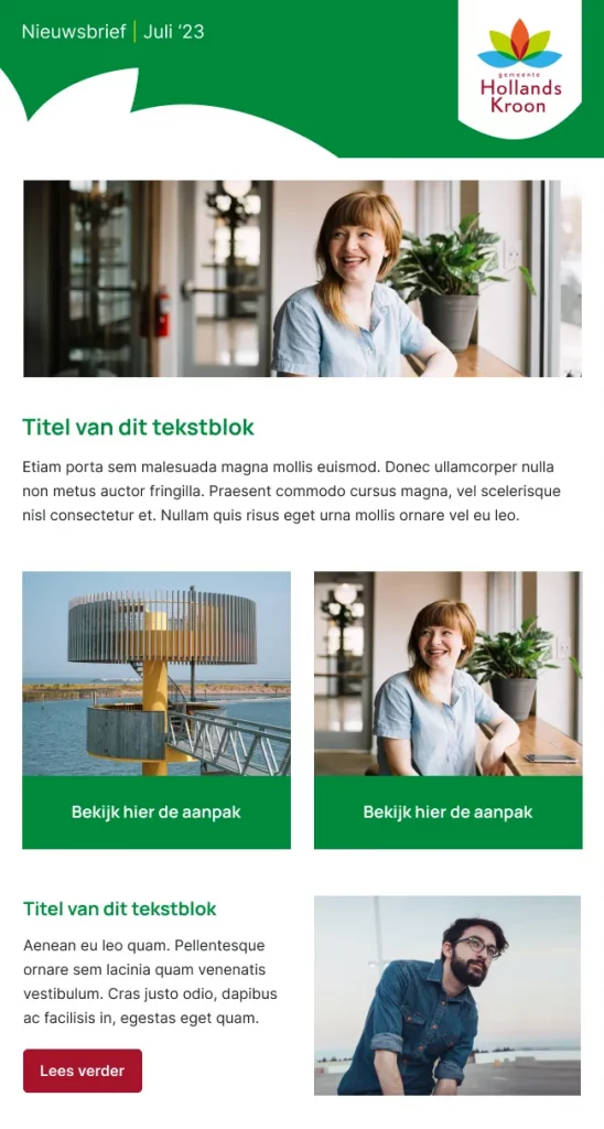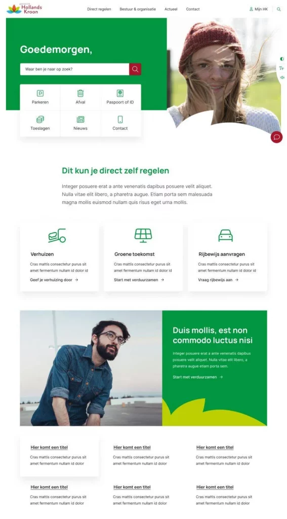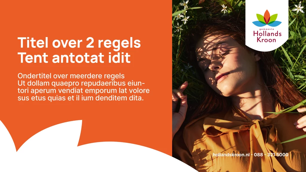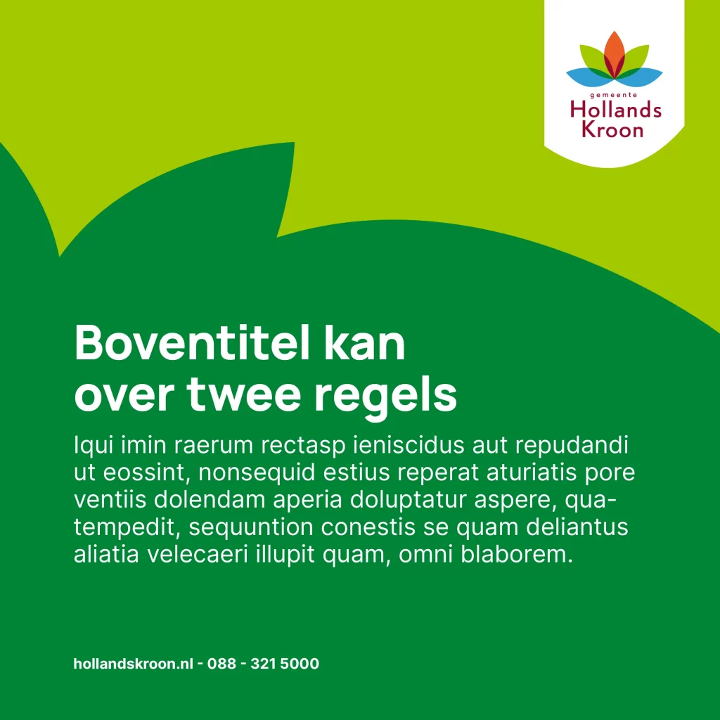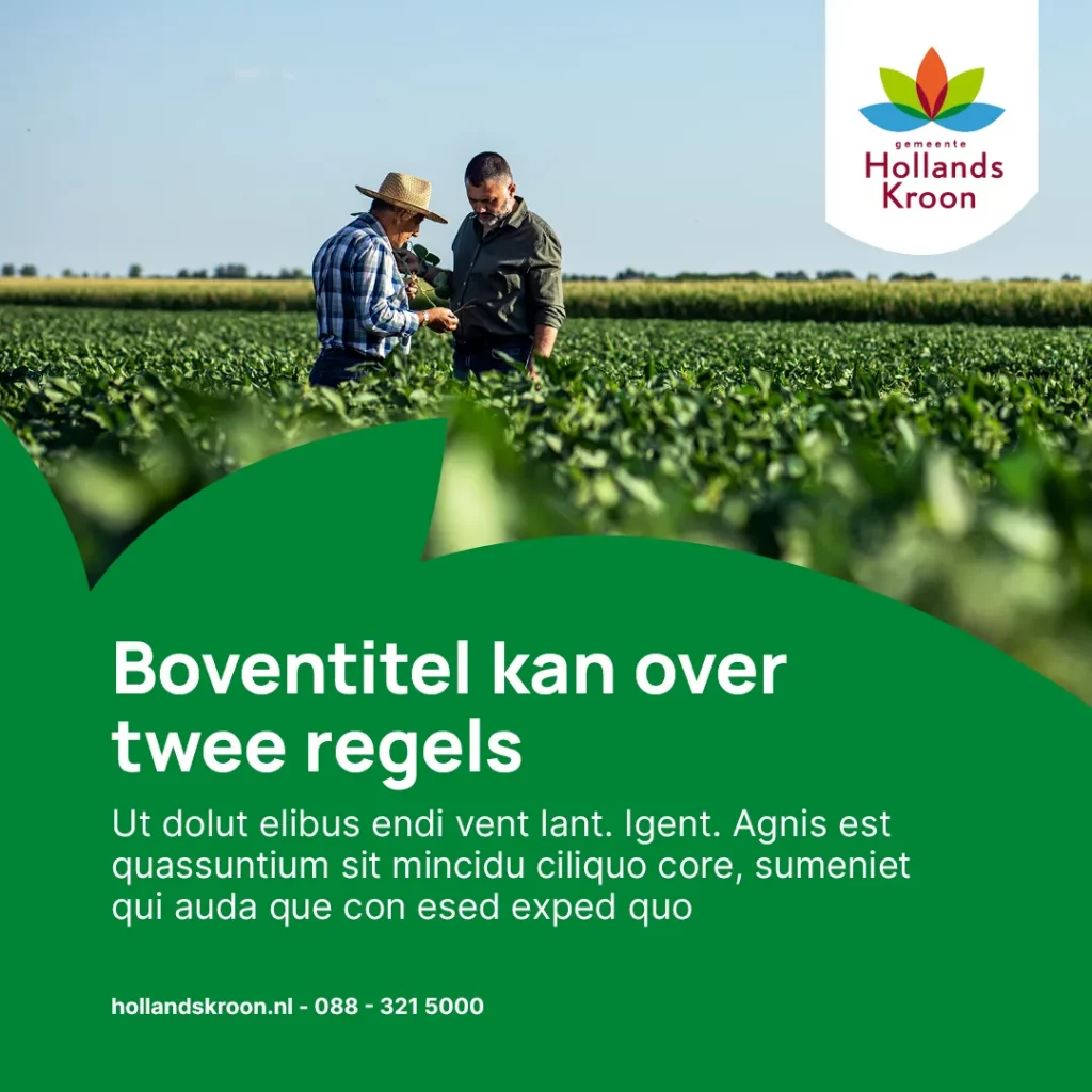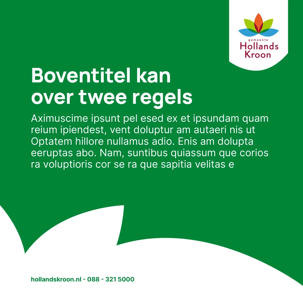Hieronder vind je een lijst met digitale middelen waarop de huisstijl van Hollands Kroon wordt toegepast. Bekijk de pagina over kleur voor de mogelijke kleurencombinaties.