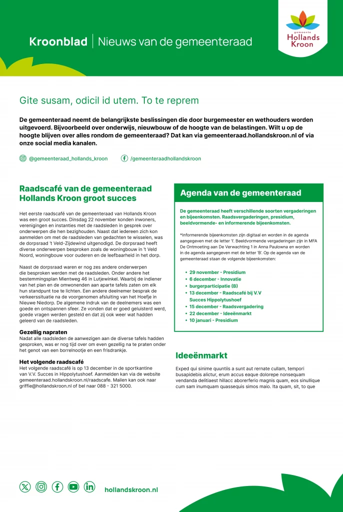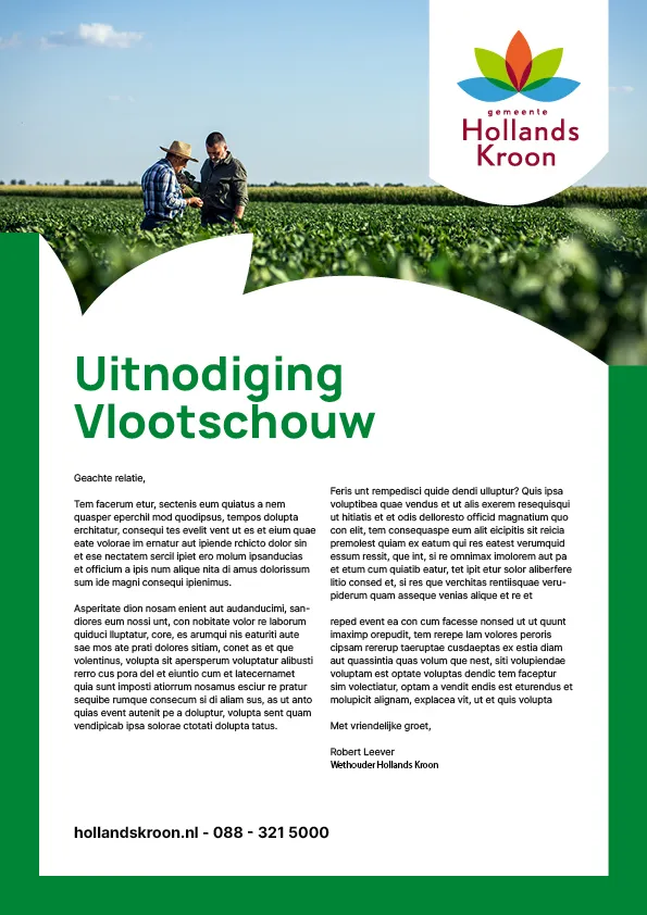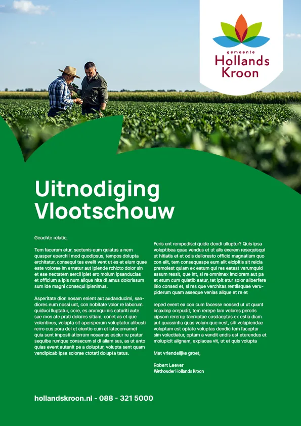 Hieronder vind je een lijst met print middelen waarop de huisstijl van Hollands Kroon wordt toegepast.